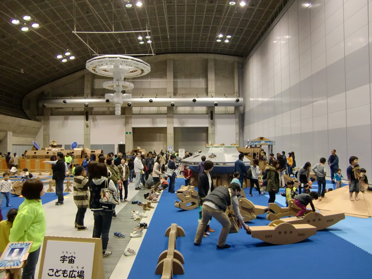 ★ダンボール王;岡村剛一郎氏(段クリエイター)制作のダンボール製恐竜・昆虫・動物・のりものなどの大型オブジェと木馬・シーソー・バランスブリッジ・小型電車、迷路などで遊びながらリサイクルの環境学習が出来るイベント。